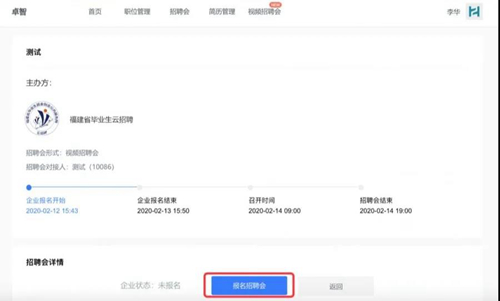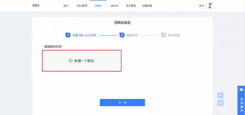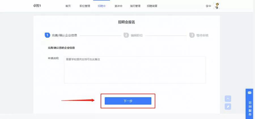 2.招聘会预约:注册信息审核通过后,报名招聘会并填写岗位信息。