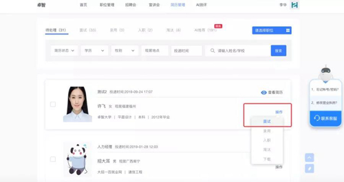 4. 通过后台接收并查看毕业生的职位应聘简历,对有意向的毕业生发送面试邀请,并进行视频面试。