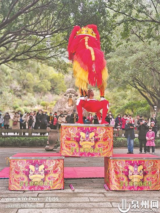 春节期间,景区安排了闽南舞狮非遗专场表演和世遗展览。在舞狮表演的同时,相关人员详细讲解了闽南舞狮非遗内容,并邀请到场市民、游客上台互动。在活动现场,还安排泉州22个世遗点照片展览。精彩的活动吸引了大量市民和游客到场欣赏非遗表演,共享文化盛宴。