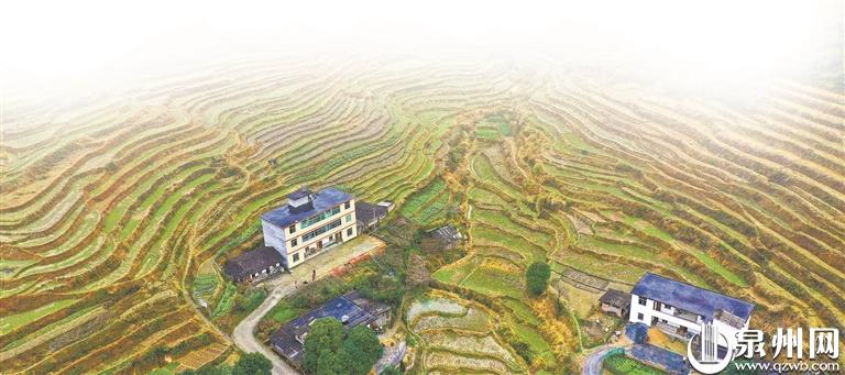 沿着十八弯的山路蜿蜒而上,被山峦包裹着的三福村缓缓映入眼帘,一座座古大厝错落点缀山间,与层层叠叠的梯田相守相望,如诗如画。