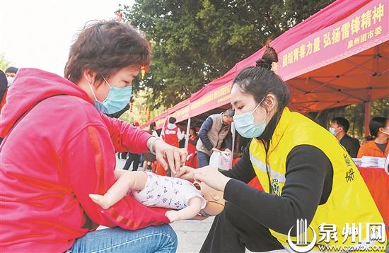 泉州网3月4日讯 (记者廖培煌 林劲峰 通讯员祝文慧 文/图)昨日,泉州市“弘扬志愿服务精神 深化文明城市创建 助力‘双轮驱动’实施”——开展全国第59个学雷锋纪念日活动暨深化第七届全国文明城市创建志愿服务动员大会,在中心市区府文庙广场举行。