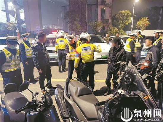 3月2日、3日连续两晚,丰泽交警在掌握线索的基础上,组织机动中队、四中队到丰海路泰禾广场路段进行突击检查。