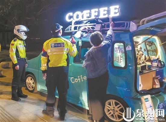 3月2日、3日连续两晚,丰泽交警在研判基础上,组织机动中队、四中队到丰海路泰禾广场路段进行突击检查。2日晚9时30分许,民警到现场后发现有多部擅自改装的网红“咖啡车”占道违停,吸引了不少前来“打卡”的汽车和大功率摩托车违停在路边,妨碍正常通行。这些“咖啡车”大多改变了内部结构或外观。民警现场查扣大功率摩托车7部,并对占用非机动车道违停的网红“咖啡车”进行了劝离。