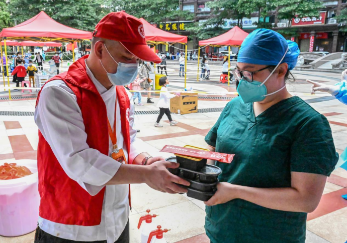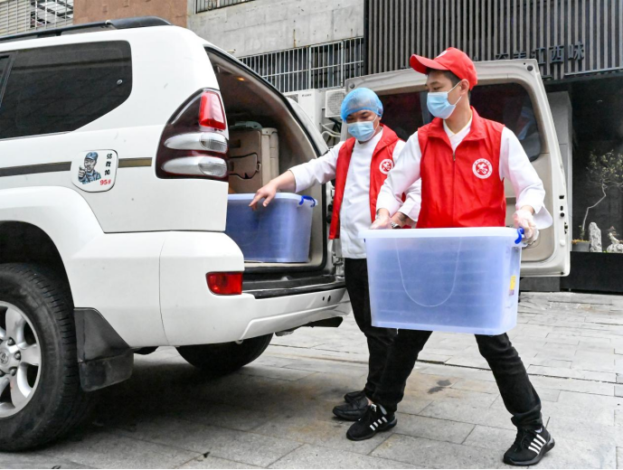 “我们能提供上千份水果”;“我们把能出来的厨师召回做出几百份盒饭”;“赣湘馆待命,参与前线配送”;“几个朋友也参与,我把他们拽进群里听从指挥.....”;在一个“同心抗疫 爱心捐餐”的微信群里,不停出现新的消息提醒,餐饮企业负责人踊跃接龙,报出企业能捐赠的最多餐食数量,商量如何更好为前线医护人员送餐的方法。考虑到用餐需求大,“爱心送餐联盟”细心研究每个细节,大家对用餐、配餐进行统筹安排,确认一线防疫人员的用餐需求,包括地点、人数、数量,然后由商户认领或者由组委会根据就近原则,直接向某个商户配发送餐任务,最后由志愿者前往送餐。