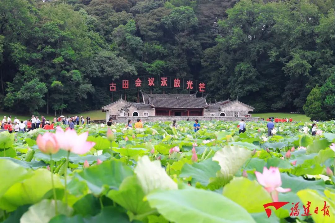 绿色环抱的古田会议会址引来众人参观学习。福建日报记者 林辉 通讯员 林斯乾/摄