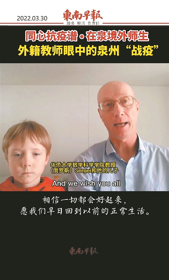 “泉州加油,大家一起早日打败病毒!”Sergei教授的小儿子也用中文表达对同心抗疫的祝福。
