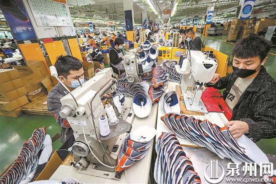 361度公司在全面做好防疫措施的基础上,组织工人抢抓生产进度,确保防疫、生产“两不误”。 (董严军 摄)