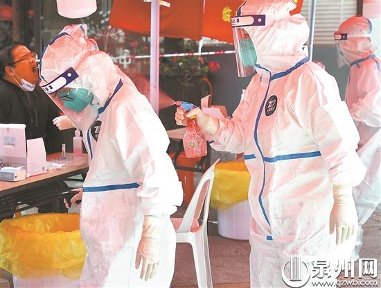 泉州网4月9日讯 (记者 李菁 王柏峰 文/图)白衣执甲,逆行出征。清晨4:00,晨曦未至,在泉州的一个个采样点,采样人穿上白色“战甲”,为新一轮的核酸采样做准备。