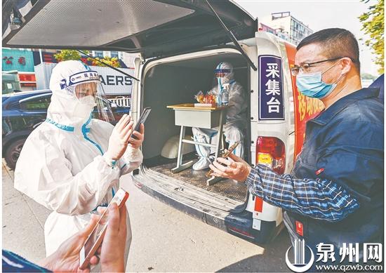 泉州网4月23日讯 (记者张晓明 通讯员谢佩龙)当前,泉州市全域均调整为低风险区,为巩固抗疫成果,助力复工复产,晋江不少地方推出流动采样上门服务,既便民又高效,还能避免人员聚集。
