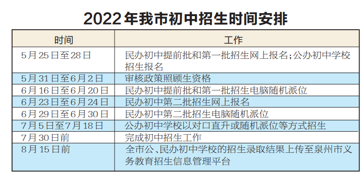 泉州网4月24日讯 (记者曾聪虹)4月21日,泉州市教育局发布《2022年泉州市初中招生入学工作方案》。今年全市民办初中招生计划、招生范围和派位主体均有所变化。