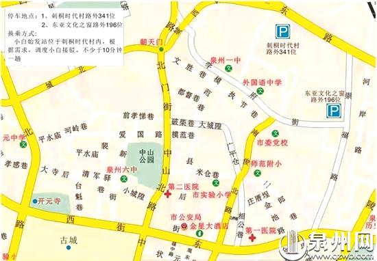 换乘方式:可前往位于刺桐时代村内的“小白”始发站换乘“小白”接驳车进入古城范围内。每10分钟一班进行接驳。