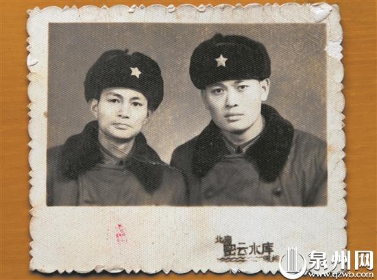 1974年,林振礼(左)在北京密云县与铁道兵战友陈朝岗在一起。(图片由受访者提供)