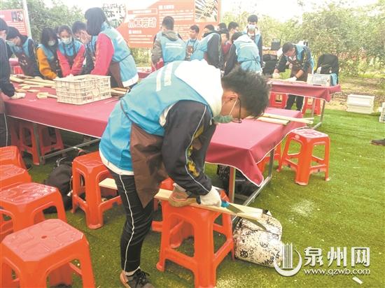 “初中和高中部,每个年段每周都有一节劳动教育课程,学校定期邀请劳动教育辅导员进课堂,引导学生掌握不同的传统工艺制作或劳动技能,包括竹木雕刻、木偶头雕刻、手工剪纸、艺术插花、花草种植、收纳整理、烹饪美食等。”泉州培元中学副校长陈轸介绍,长期以来,学校致力于探索劳动教育与家庭教育的组合,引导家长帮助孩子掌握各种生活技能,每学期还会组织各个年段学生到惠安辋川镇中小学研学实验教育基地体验农业生产劳动。