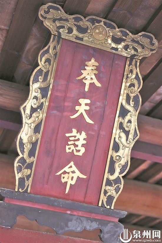 狮仔厝大厅横梁处的“奉天诰命”牌匾