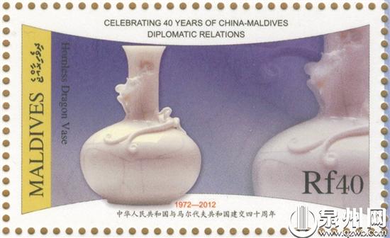 马尔代夫2012年发行的现代德化窑螭龙瓶邮票