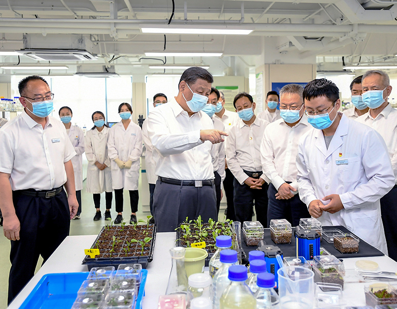 2022年4月10日至13日,中共中央总书记、国家主席、中央军委主席习近平在海南考察。这是10日下午,习近平在位于三亚市崖州湾科技城的崖州湾种子实验室考察。