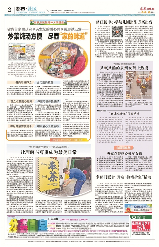 泉州晚报报道爱心共享厨房试运营(版面截图)