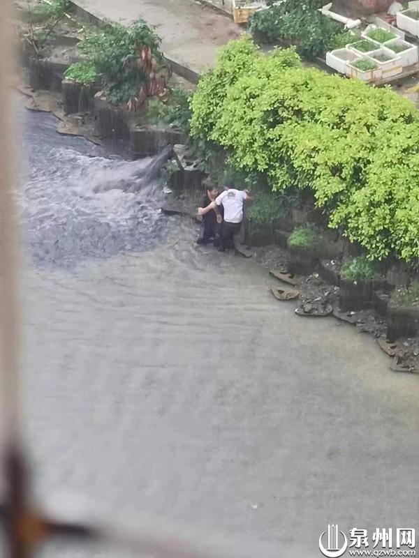 泉州网6月12日讯(记者张晓明 黄祖祥 文图/视频)11日16时许,大雨滂沱,在晋江市池店镇桥南新加坡城小区后门附近,一名白衣男子落水眼看就快没了挣扎的迹象……