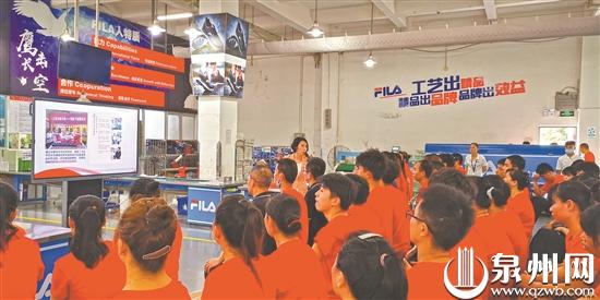 泉州网6月21日讯 (记者陈智勇 通讯员童婷香 柯国笠 文/图)昨日,《闽山闽水物华新——习近平福建足迹》主题宣讲走进安踏集团,在安踏(中国)有限公司鞋业事业部三厂二楼红色车间里,吸引了数十位一线员工现场听课。