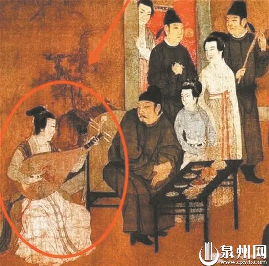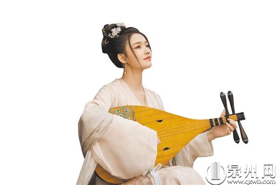 “从剧中演员表演的图片看,确实是南音琵琶的形状,南音琵琶表演是横抱的姿势。”南音青年演奏家沈艺捷告诉记者。泉州南音起源于唐朝,形成于宋代,素有“唐宋遗风”之称。表演时需要五种乐器互相配合,琵琶、十目九节洞箫、拍板,还有二弦和三弦,前三样是主要乐器,后两样是辅导乐器,演奏时采用横抱姿势。唐代建造的泉州开元寺内的飞天乐伎、敦煌壁画上的飞天造型,都是如此表现。“横抱琵琶用拨片来弹奏,弹出来的声音比较委婉、缠绵。”沈艺捷说。