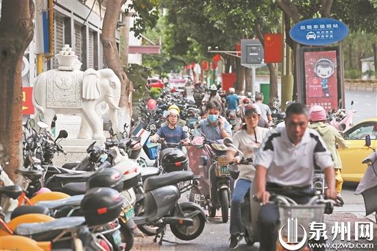 泉州电动车数量众多,大街小巷都有它们的身影,由此也衍生一个问题——停车。为了规范停车秩序,相关部门在中心市区大部分非机动车道都施划了停车位。以刺桐路和泉秀街为例,大多数路段有足够的非机动车停车位置。