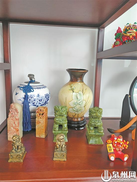 端详这对石狮子,其形象生动喜气,线条流畅、清晰,背驮莲花,寓意吉祥富贵;一狮抱子、一狮抱球,寓意有求必应,灵验祥瑞;双牙突出,既点出了狮子形态,又展示了狮子的威猛;石纹简括,显得沉稳有力,作品憨态安详,代表太平盛世的美好幸福。据蒋惠民介绍,在人们印象中,石狮子大多比较大型,置于门口;实际上,把石狮子作为摆件,摆放在案头,常常凝视把玩,这种雅事古已有之。改革开放后,不少台湾的订单就是专门定做小型石狮子的。如今,随着狮文化进一步传承弘扬,更多人喜欢把象征吉祥的石狮子“请”进自己家中,陪伴家人平安健康生活。“这批小巧可爱的狮子,是一位客户订制的,应该是作为礼品送人的。”古往今来,惠安工匠雕刻的石狮子,在大小之间,自如切换。