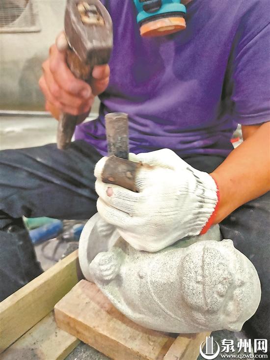 “正在赶制一批石狮子的订单,高度30厘米左右。”近日,在石雕之乡惠安崇武的一个工厂里,工人正在忙碌着,一批高度30厘米左右的小型石狮子摆放在地上,材质有本土青石,也有“山西黑”。这些狮子名字简朴,就叫作《石狮》,但是其设计却不简单,它是中国雕刻艺术大师、福建省工艺美术大师、泉州大唐石刻有限公司董事长兼艺术总监蒋惠民创新设计的代表作之一,具有独特的神韵和风采。