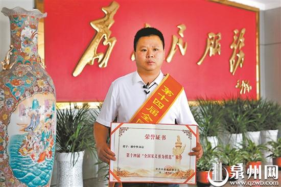 泉州网7月19日讯 (记者张晓明 黄祖祥 通讯员陈耀宗 庄凌龙 文/图)7月17日,第十四届全国见义勇为英雄模范表彰大会在北京召开,晋江市见义勇为人员谢中华荣获“全国见义勇为模范”称号。