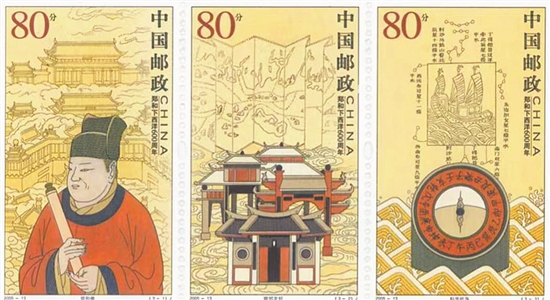 2005年发行的《郑和下西洋600周年》邮票包含泉州元素,但不大明显,但是该邮票在泉州首发。据了解,此套邮票由清华大学美术院崔彦伟老师设计,内容包括:小型张——郑和下西洋600周年、套票第一图——郑和像、套票第二图——睦邻友好、套票第三图——科学航海。据介绍,这套邮票之所以选择泉州为全国仅有的两个首发地之一,是因为郑和与泉州有着千丝万缕的关系。泉州是古代“海上丝绸之路”的起点,有数千年的航海传统和优良的港口,造船技术发达,航海技术精湛,漂洋过海经验丰富。郑和下西洋曾到过泉州,其中第五次下西洋就在泉州起锚。发行时,国家邮政局邮票服务中心还在泉州新华都广场进行了个性化邮票现场制作。