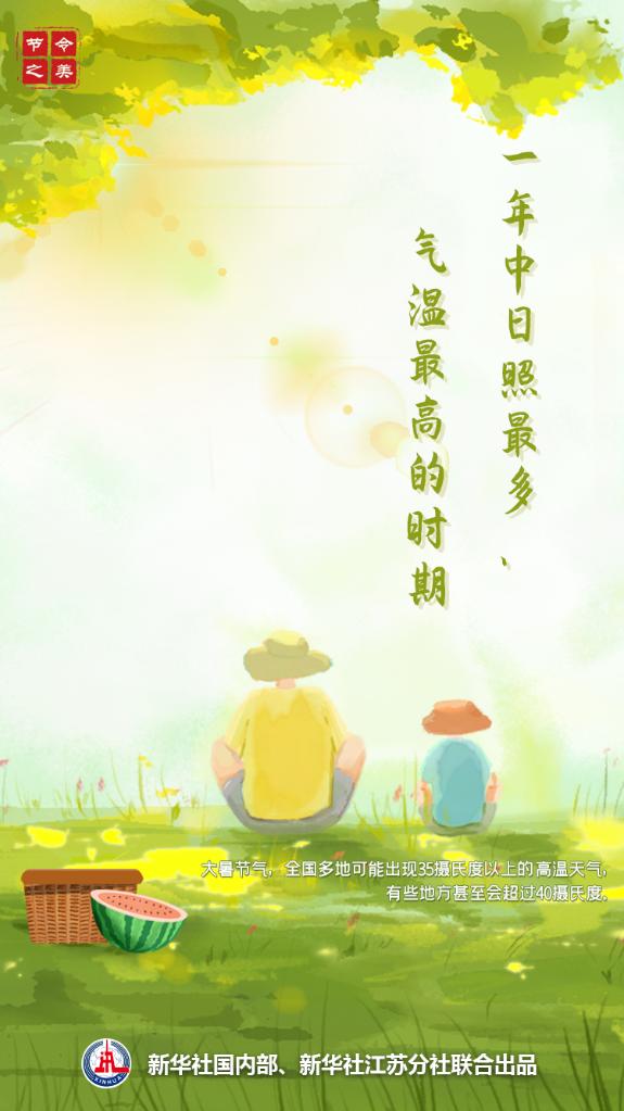 新华社南京7月23日电(记者邱冰清、王珏玢)7月23日迎来大暑节气。作为夏季“蒸煮模式”的顶峰,大暑节气有多热?炎热对农作物有什么影响?气象、农业专家为您解答。