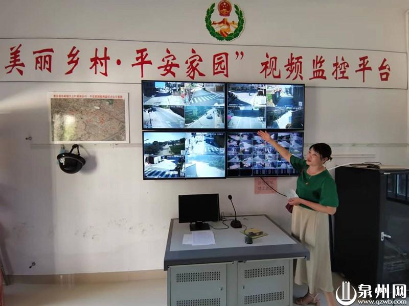平安乡村视频监控平台保护村民财产和人身安全。图为大坵村书记刘雪红正在介绍监控系统。(洪荣堆 摄)