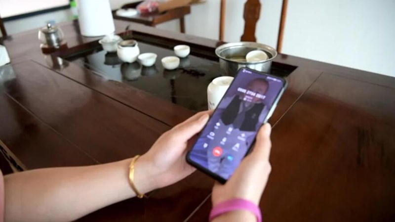 村民接到中国电信“乡村振兴服务平台”群呼的电话通知时,手机界面与普通来电无异。(中国电信泉州分公司 供图)