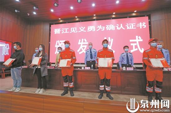 在他人遭遇危险时,他们不顾个人安危挺身而出。昨日上午,一场充满着正能量的新闻发布会在晋江市公安局召开。70后李添恩、80后蔡晶晶和李雅真、90后柯庆发、00后陈建建5人的救人行为被确认为见义勇为。