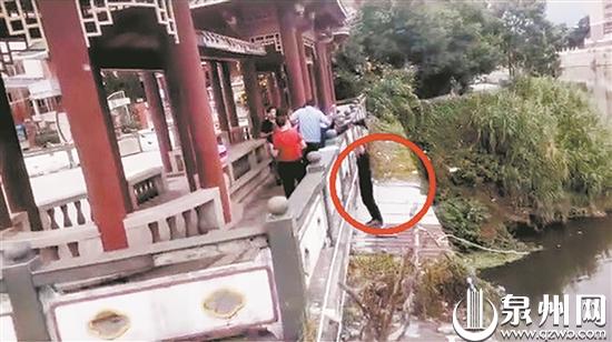 突然,该女子的一个异常举动引起了李金土的注意,只见她双手扒在亭子边的栏杆,试图跨过去,而栏杆下面就是湍急的河流。