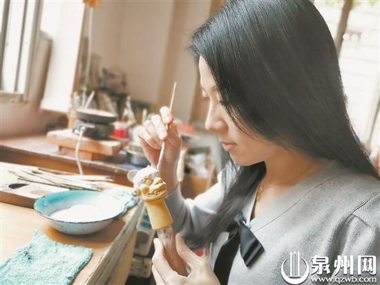 “一直关注你们晚报《泉州‘狮’话》栏目关于狮文化的报道,特别是你们报道的古城各式各样的石敢当,我觉得十分有趣。刚好最近有个台湾收藏家,将他收藏的早年我父亲创作的一个木偶狮头图片发给我,我便萌生了创作一只不一样的木偶狮头的想法。”在位于鲤城区棋盘园的黄义罗木偶雕刻艺坊内,黄雪玲正细心为一个狮头上粉。
