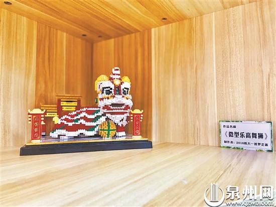 小朋友制作的乐高醒狮作品(石狮市锦尚镇第二中心幼儿园 供图)