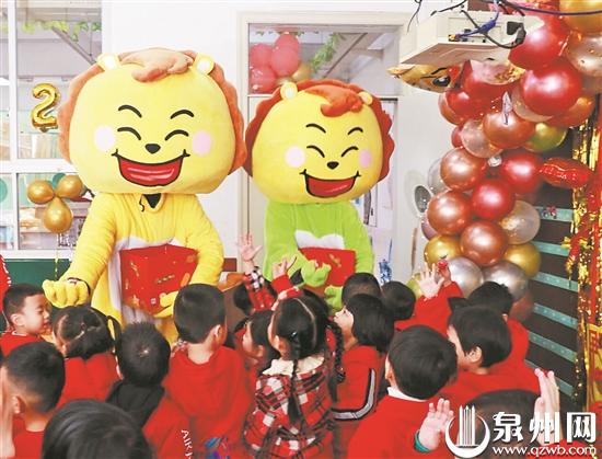狮子形象的吉祥物,成为幼儿园小朋友的好伙伴。(石狮市第二实验幼儿园 供图)