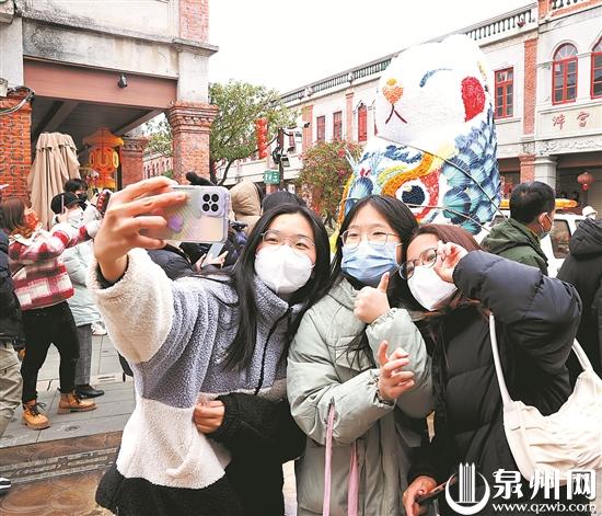 策划组织活动,引流带流,活跃市场,造福民众。举办“福文化”主题系列活动,2022年虎年春节期间掀起“福”文化热潮,持续策划组织十“泉”十“福”等系列活动,举办泉州市“世遗泉州”城市礼物暨“福狮”文创设计大赛。中宣部《宣传工作》、省委《八闽快讯》分别以《福建泉州以“福狮”为载体活化文化遗产、赓续城市文脉的探索与思考》《泉州市挖掘利用特色资源推动文化创造性转化创新性发展》为题刊发泉州经验做法。加大传统文创产品供给,结合世遗文化和兔年春节契机,推动鲤城区筹备数字文创博览会,打造五只“巨兔”亮相古城街头巷陌,人民日报、新华社等主流媒体均给予报道推广,全网流量超1.8亿;推动丰泽区打造“海丝·蟳埔”民俗文化节,以爆火的“簪花围”带出文旅融合的百花齐放;传统文创产品销售量暴增,辖区内物宜本兮、泉州府、乐城之旅、西街游客中心等文创产品销售量同比2022年春节增长200%以上。全市推出的陶瓷、雕艺、剪纸、藤铁、食品、3D打印等10多个类别300多款“福兔”文创产品,火爆劲卖,以实际行动构筑起“福”文化创新发展模板,赋能文旅经济发展。统计显示,2023年春节假期,实现旅游收入20.43亿元。