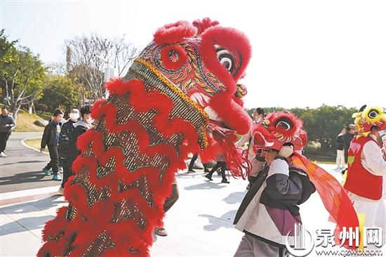 武生团在各个传统节日经常进行公益的舞狮表演活动。其在晋江梧林传统村落表演的刣狮还登上了中央电视台。“刣狮表演结合了武术、舞狮及阵法操演等,代表了民众与土匪、倭寇作斗争的精神,也有驱邪除恶之意。”陈伟介绍。