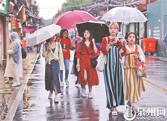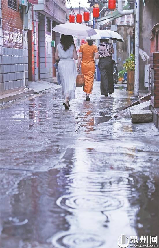 泉州西街,游客在雨中品味古城。(柏峰 摄)