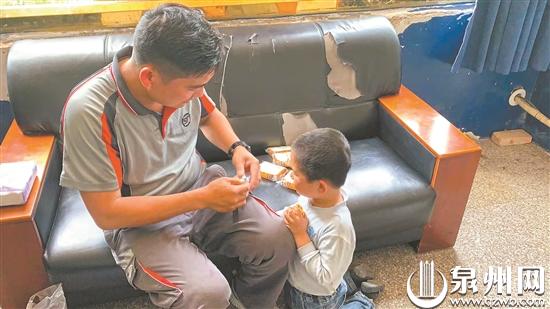 经过十几分钟的努力,民警终于联系到了男童的父母。“当时他爸爸吓得腿都软了。”据男童的母亲邓女士介绍,孩子今年3岁半,当时她用电动车载着孩子到外面买快餐,回到务工的鞋厂门口停车后发现孩子不见踪影。寻找无果后邓女士联系了丈夫和工友。大约半小时后,邓女士的丈夫拨打报警电话,了解到鹏头警务室有名走失的小孩,夫妻两人立即赶了过去,发现自己的孩子安然无恙,才松了一口气。