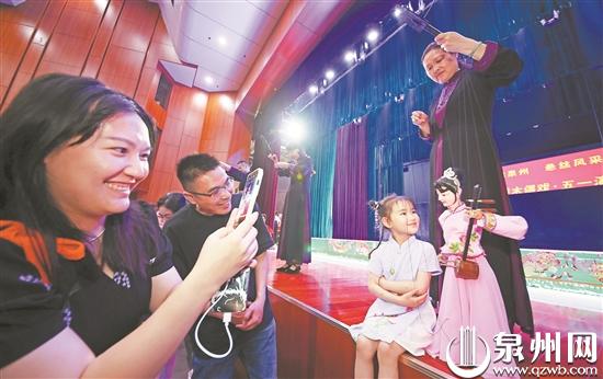 “演出太精彩了,这是我第一次来泉州,也是第一次观看泉州提线木偶艺术表演,真是不虚此行。”来自广东的张先生高兴地说,“五一”来泉旅游,慕名想看泉州提线木偶戏演出,提前在公众号上买好票,演出后的互动环节,他还上台和喜爱的木偶“小沙弥”合影留念。