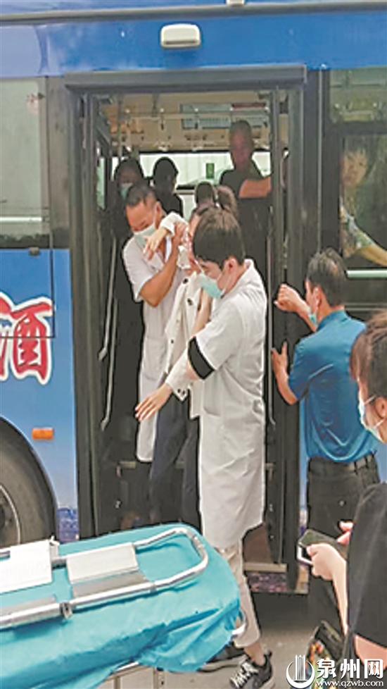 昨日8时30分许,正值上班高峰期,11路驾驶员黄印王驾驶公交车往泉州市区方向驶去。当行驶至室仔前站点时,车上一名男乘客突然昏厥倒地,引起众人惊呼。乘客纷纷上前查看情况,但该男子脸色苍白,神色痛苦,无法做出回应。黄印王听到呼救后,立马请求大家搀扶好昏厥乘客,并迅速做出决断,往附近的万鸿医院驶去。到达万鸿医院门口,黄印王飞快下车往医院内跑去。很快,医生抬着担架出来,将昏厥乘客抬下车。“幸好离医院比较近,5分钟左右就送到了!”看到乘客及时得到救治,黄印王终于松了一口气。考虑到车上还有乘客赶着上班,黄印王和医生交代完情况便返回驾驶室继续工作。