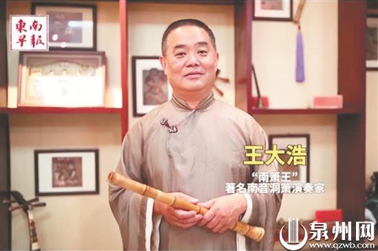 王大浩对乐器从小就有着别样的情愫和天赋,从艺40年来,一直潜心钻研的他在南箫方面做出了杰出的贡献,在继承与创新之间,将南音洞箫发扬到极致,被称为“南箫王”。1983年,他研制出中国首支低音洞箫;他曾先后代表泉州南音剧团参与接待党和国家领导人,随团赴联合国教科文总部做“申遗”展演;2006年、2014年成功举办个人洞箫独奏音乐会并录制发行首张南音洞箫音乐专辑《禅定》;出版和发表专著《泉州南音洞箫教程》及论文6部40余万字。