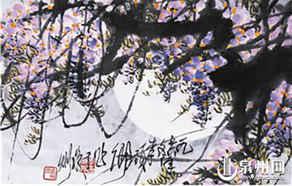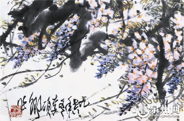 李崇正先生道出了其中的缘由,父亲作品以山水为主,但也喜欢画一些花草,在花草画中尤其喜爱紫藤花,经常作画作到一半时,下楼来仔细观察紫藤花的模样,又继续上楼作画。