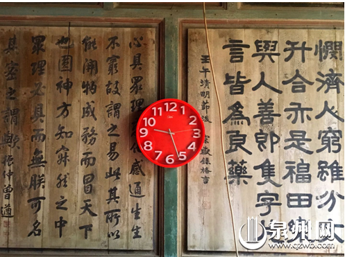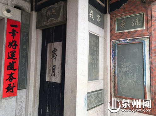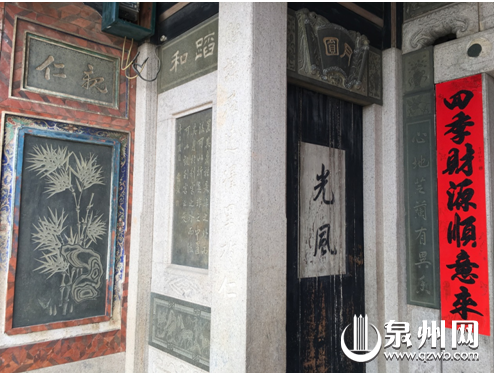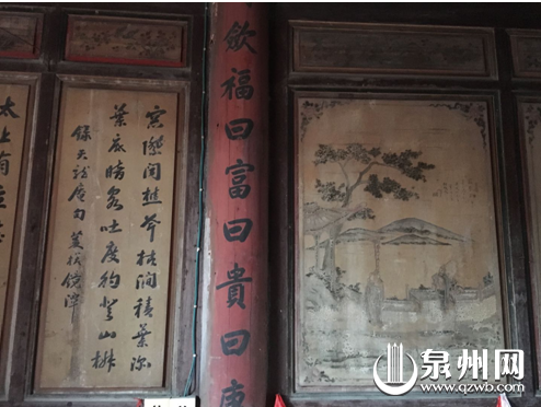 进入古厝,人文气息扑面而来,厅堂两边墙上,满是泉州历史上文人骚客的国画墨宝,泛黄的笔墨下,有令人舒服的古旧味道。屋内各个门廊的柱子上处处刻着诗联,令人目不暇,仔细一读,好诗好句不断。