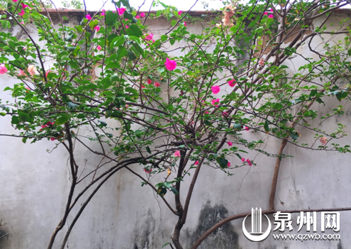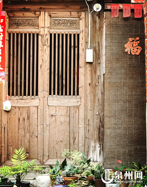 木牗竹帘,盆景绿植,门前一株铁海棠开得明艳。这是巷内一户居民的老厝,如今主人没有生活在这里,“四间张”的老厝用来栽花种草,真的是一种闲情逸致的生活。