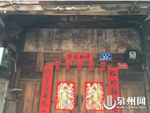 在巷中一座古厝大门上方,依稀可见几十年前的标语