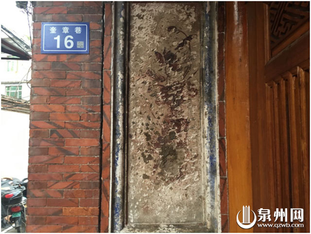 奎章巷14号和12号同处一个大院内,百年古厝的门楣上,几十年前的标语至今依稀可辨。院内的12号面对大门,14号则位于通道西侧。