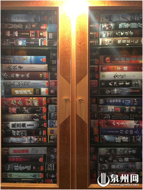 左侧书柜内,各类国产电视剧一应俱全,在网络时代,这样的老派刷剧方式已不多见,别有趣味。